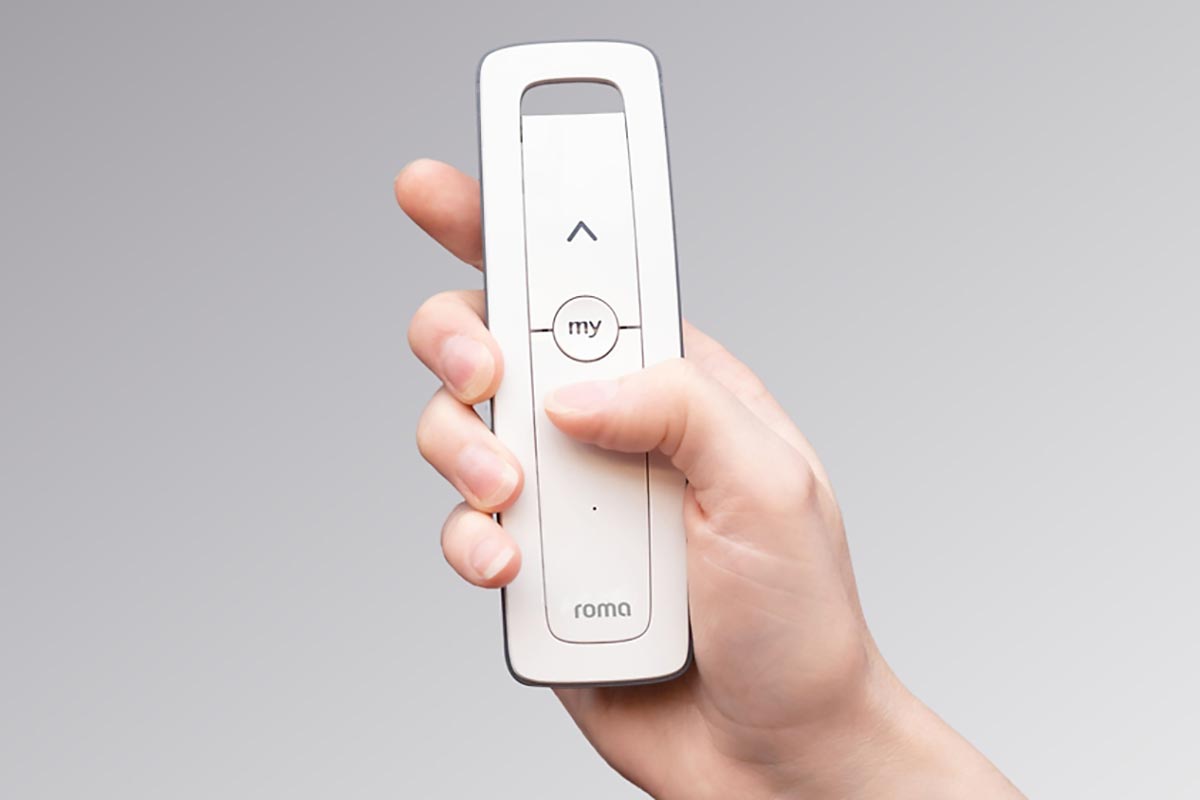 Die handliche ROMA Funksteuerung steuert Licht und Schatten bequem von jeder Stelle Ihres Hauses aus. Lassen Sie morgens vom Bett aus die Rollladen hochfahren. Oder fahren Sie abends von der Couch aus alle Rollladen herunter.